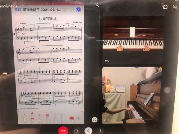 老師的正面,老師的手型,與即時電子檔樂譜,並在每堂課程結束後傳送本堂視訊課程的電子檔樂譜上課筆記,與老師另外錄製的示範影片,已達成最佳的學習效果。